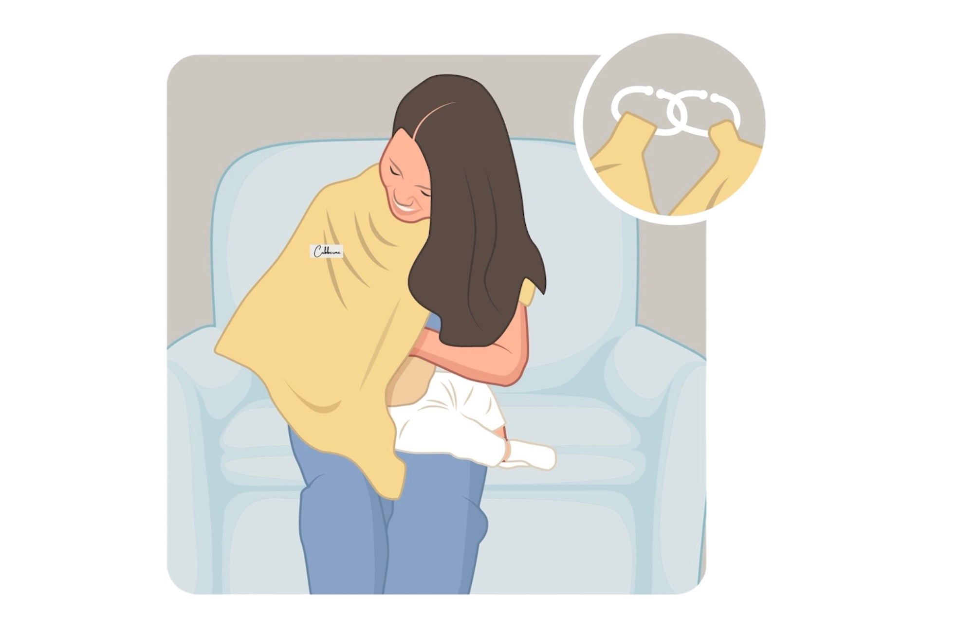 Connect the middle link to one of the side links and hang the cover on your neck to be used as a nursing cover.